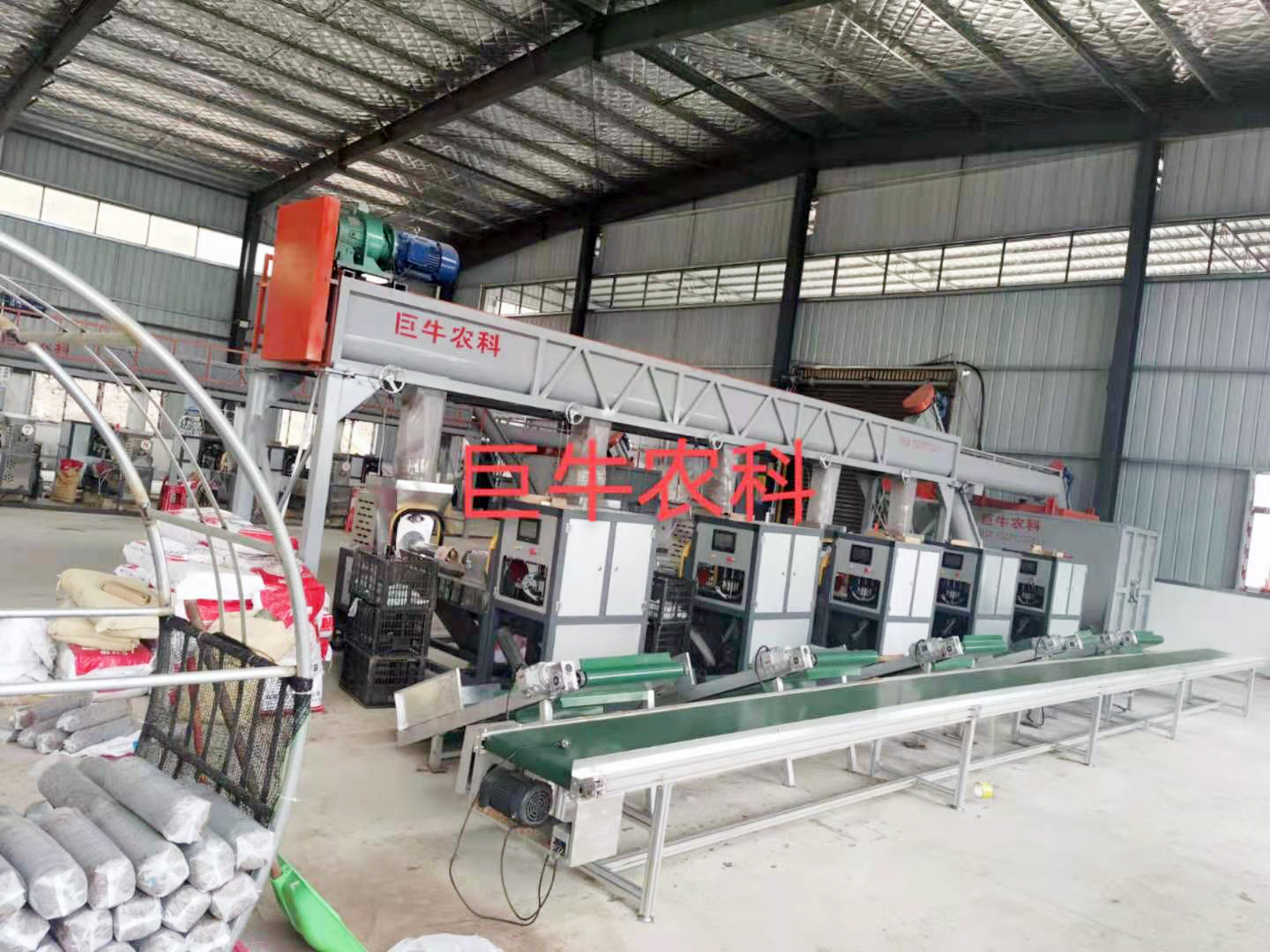 日產(chǎn)四萬袋5位工生產(chǎn)流水線配有:兩臺槽式拌料機,兩臺提升機,一臺循環(huán)分料機,五臺自動裝袋機,還有五臺扎口機,五臺斜坡輸送帶,橫向輸送帶1臺,一個配電箱。每一個環(huán)節(jié)都設(shè)計合理安排緊湊,巨龍農(nóng)科食用菌流水線具有占地省、節(jié)約人力等眾多優(yōu)點,是您的不二選擇!